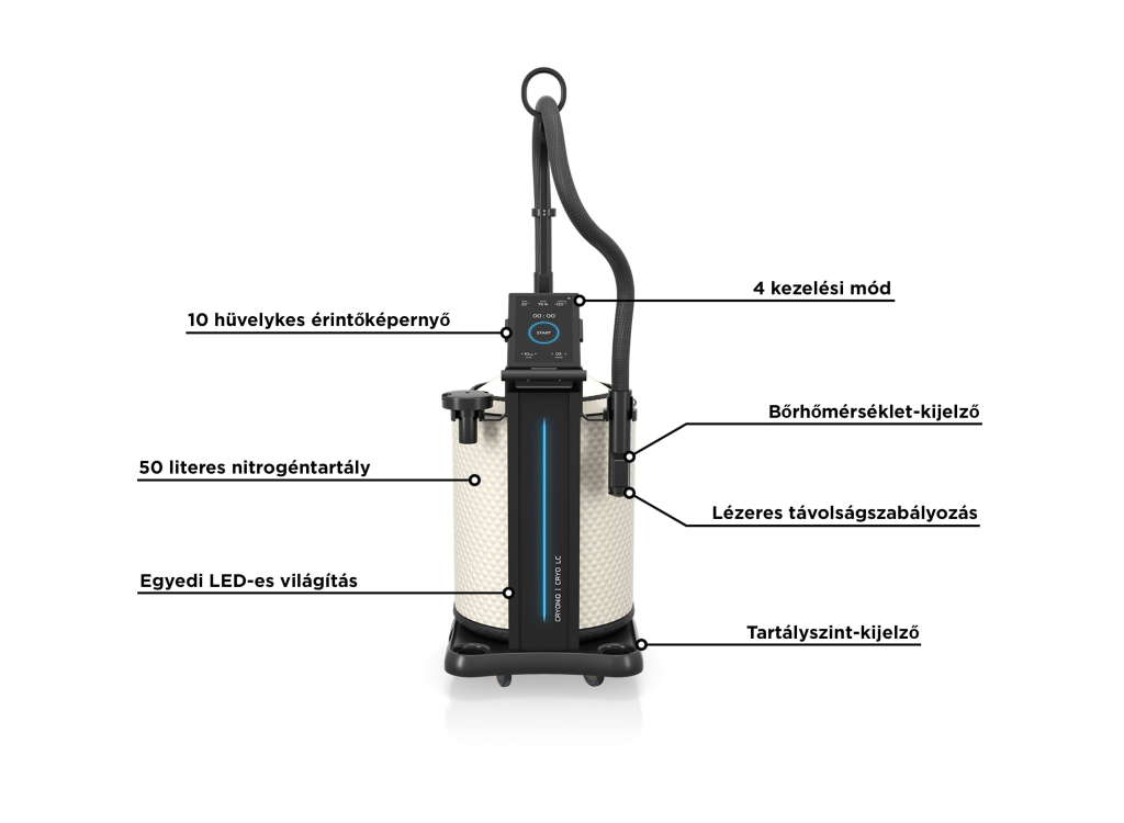 A CRYO LC a teljes képzés után egy nagyon könnyen kezelhető és megbízható eszköz, amely lehetővé teszi a kriostimuláció hatékony alkalmazását, biztosítva a kezelő és az ügyfél teljes kényelmét és biztonságát. A hajlékony tömlőre szerelt fúvóka kimeneténél a készülékkel keletkező nitrogéngőzáram már a berendezés 30 másodperces bekapcsolását követően eléri az üzemi hőmérsékletet (-160 °C). A folyam áramlási sebessége a felület méretétől és a kezelt problémától függően 6 különböző fokozatban állítható be.